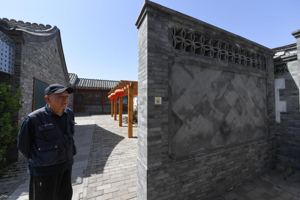 69歲的居民崇寶才在修繕一新的北京市東城區(qū)雨兒胡同30號(hào)院內(nèi)(5月13日攝)。新華社記者 鞠煥宗 攝
