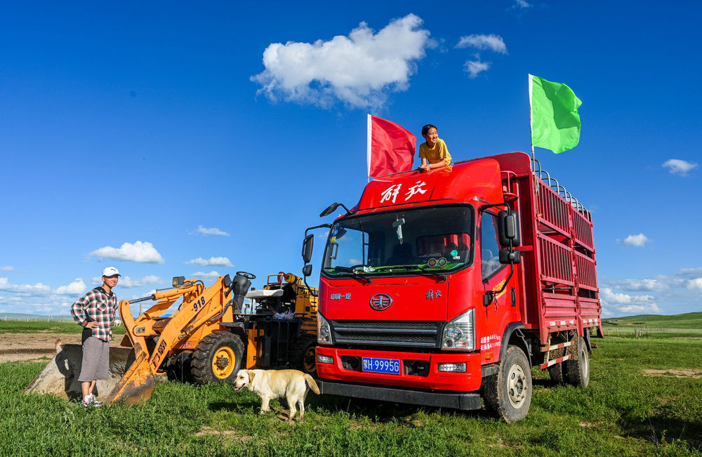 8月4日,錫林花和小伙伴包音圖(左)在自家的牧場玩耍。