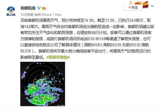 旅客可以通過首都機場官方微博和微信,或撥打首都機場問訊電話010-96158等渠道了解相關(guān)信息,也可以直接咨詢各航空公司了解具體情況(國航95583;南航95539;東航95530;海航95339)。首都機場將盡最大努力確保旅客平安出行,將雷雨天氣對航班運行的影響降至最低。