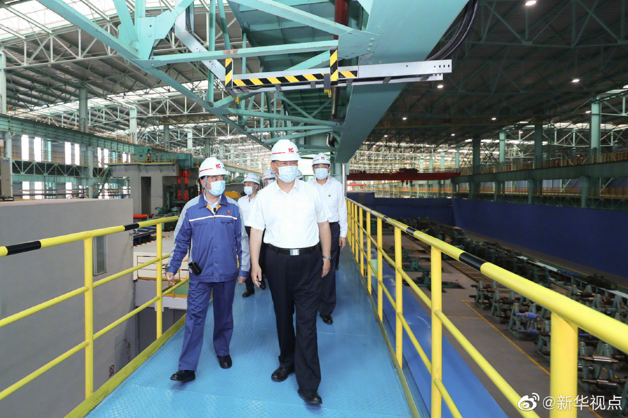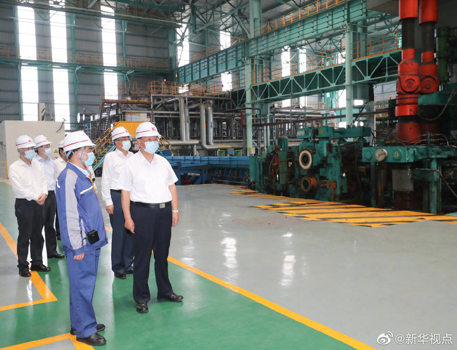19日上午,正在安徽考察調(diào)研的習(xí)近平總書記走進(jìn)中國寶武馬鋼集團(tuán)優(yōu)質(zhì)合金棒材車間,冒著高溫察看生產(chǎn)運(yùn)行情況,并同勞動模范、工人代表親切交流。習(xí)近平指出,在抗擊新冠肺炎疫情過程中,馬鋼較早復(fù)工復(fù)產(chǎn),實(shí)現(xiàn)了產(chǎn)量、營銷收入同比雙升,展現(xiàn)了國有經(jīng)濟(jì)的強(qiáng)大韌性。他勉勵馬鋼在長三角一體化發(fā)展中把握機(jī)遇、順勢而上,特別是要把自身改革發(fā)展同長三角一體化發(fā)展有機(jī)結(jié)合銜接,力爭在長三角一體化發(fā)展中不斷發(fā)展壯大自己,也為長三角一體化發(fā)展作出自己的貢獻(xiàn)。(文字記者:張曉松 攝影記者:鞠鵬 王曄 燕雁)