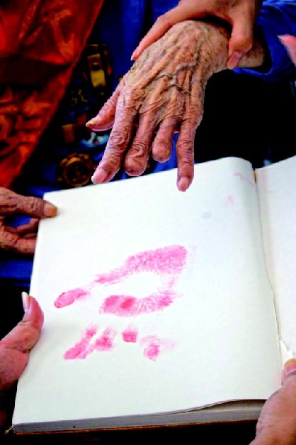“我們一直在想辦法為抗戰(zhàn)老兵留下一些印記。最開始想出影集,可是考慮到經(jīng)費的原因,我們決定留手印?!薄昂侠媳摇必?fù)責(zé)人老魚說,留手印是既有紀(jì)念意義、又“花錢少”的方式,“我們的經(jīng)費很寶貴,每一分錢都要直接用在老兵身上?!?/p>