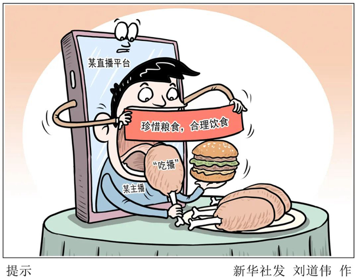 目前,一些平臺已對吃播內(nèi)容加大管理力度。半月談記者在快手、B站等平臺搜索“吃播”“大胃王”等關(guān)鍵詞時,出現(xiàn)“拒絕浪費,合理飲食”等提示語。
