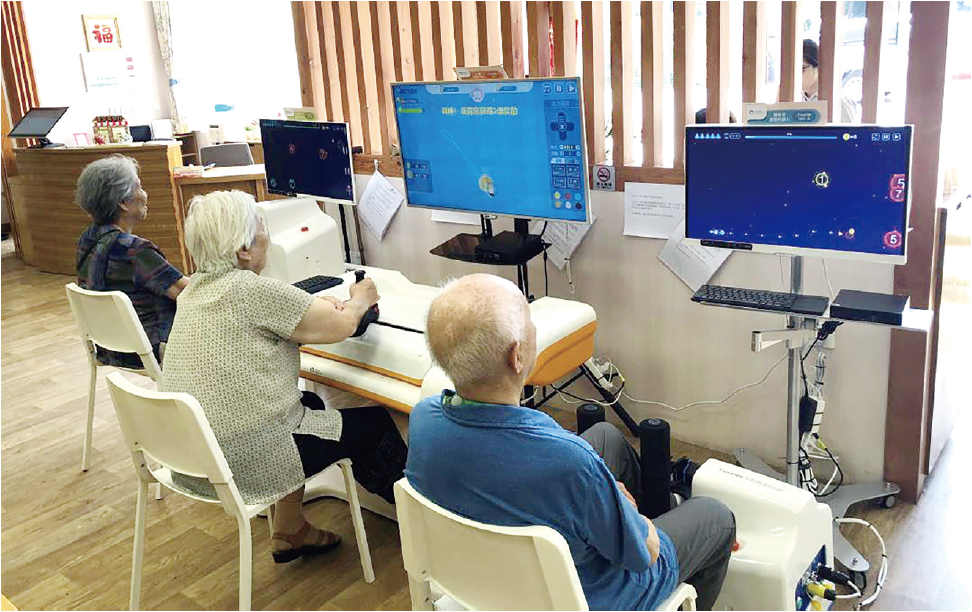 “在它們的陪伴下,康復(fù)就像做游戲,老人們都很喜歡玩。”據(jù)照護(hù)家園負(fù)責(zé)人施君潔介紹,當(dāng)康復(fù)師設(shè)定好康復(fù)方案后,老人坐在電腦前,手肘放在肘托中,手指抓住操縱桿,屏幕上就會(huì)出現(xiàn)各種水果。老人可通過操縱桿上下左右移動(dòng)抓水果,來達(dá)到康復(fù)訓(xùn)練的目的。