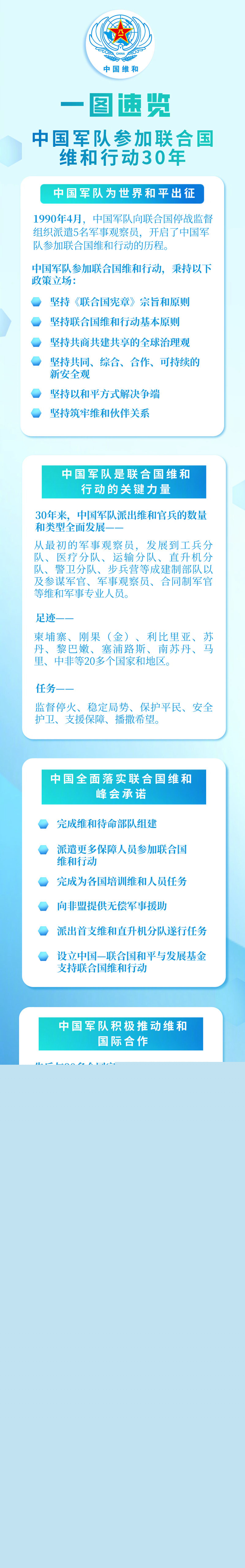 30年來,中國軍隊始終認(rèn)真踐行《聯(lián)合國憲章》宗旨和原則,堅定支持聯(lián)合國在維和行動中的主導(dǎo)地位,支持聯(lián)合國通過改革構(gòu)建更加完善的維和行動體系。