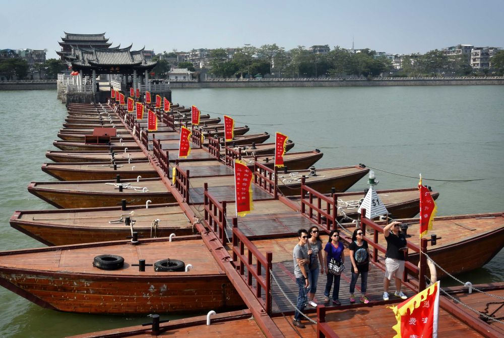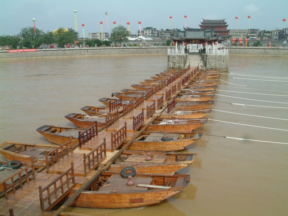 ↑ 廣濟橋中間的浮橋由十八只木船連接而成