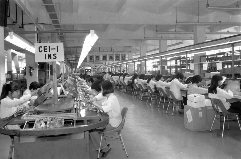 廈門(mén)特區(qū)湖里工業(yè)區(qū)廈華電子有限公司彩色電視機(jī)廠基板裝配生產(chǎn)線(xiàn)。新華社記者 李開(kāi)遠(yuǎn) 攝(1987年11月2日)