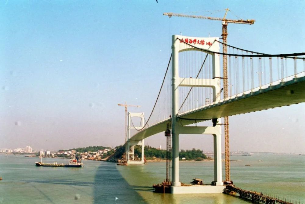 中國(guó)首座現(xiàn)代化大跨度懸索橋——廣東汕頭海灣大橋日前勝利竣工。新華社記者 王敬德 攝(1995年12月25日發(fā))