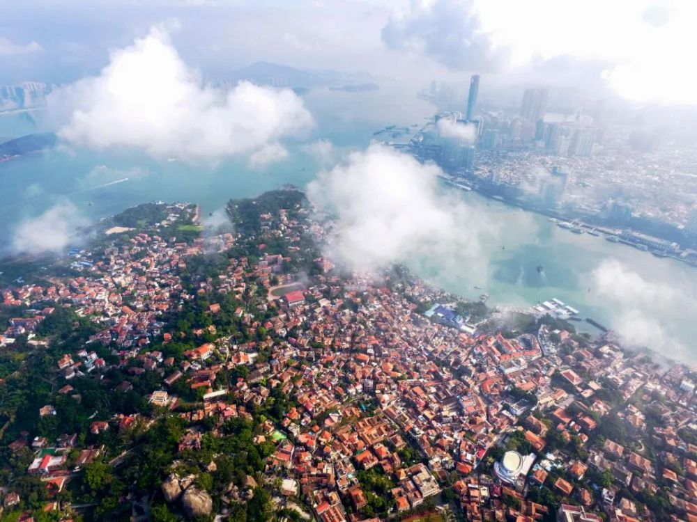 2017年6月29日航拍的云層下的福建廈門(mén)鼓浪嶼民居。新華社記者 姜克紅 攝
