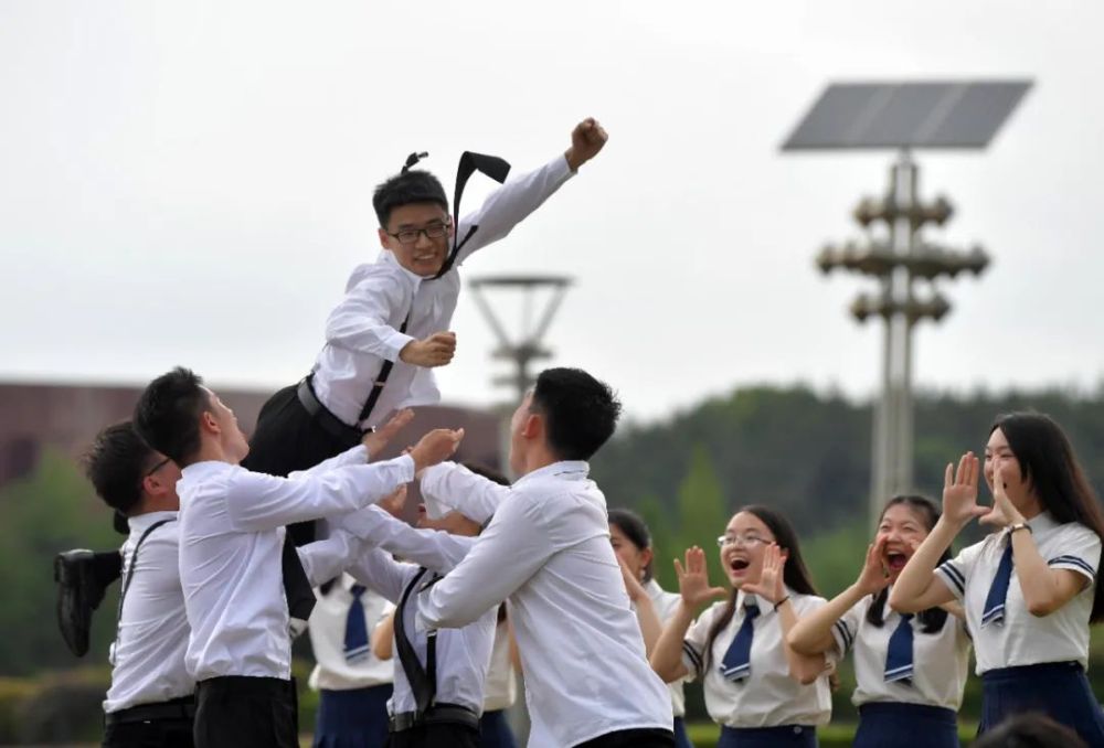 2020年6月10日,在南昌大學(xué)校園內(nèi),學(xué)子們一起歡呼,拍畢業(yè)照留念。新華社記者 彭昭之 攝