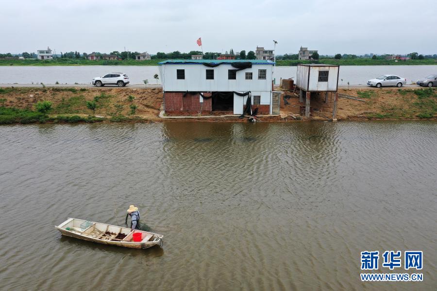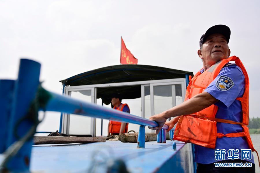 在江西省湖口縣,江豚協(xié)助巡護(hù)隊(duì)的隊(duì)員伍后春在觀察水面是否有違法捕撈的工具。他和他的父親、爺爺三代在鄱陽(yáng)湖和長(zhǎng)江捕魚為生,2017年開(kāi)始上岸,目前已成為巡護(hù)隊(duì)隊(duì)員(6月8日攝)。新華社記者 彭昭之 攝