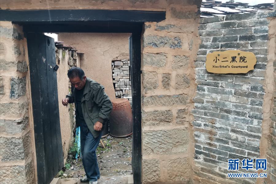 山西省左權(quán)縣芹泉鎮(zhèn)橫嶺村一座獨(dú)具太行民居特色的石房院落掛上了“小二黑院”的牌子(10月14日攝)。新華社記者 許雄 攝