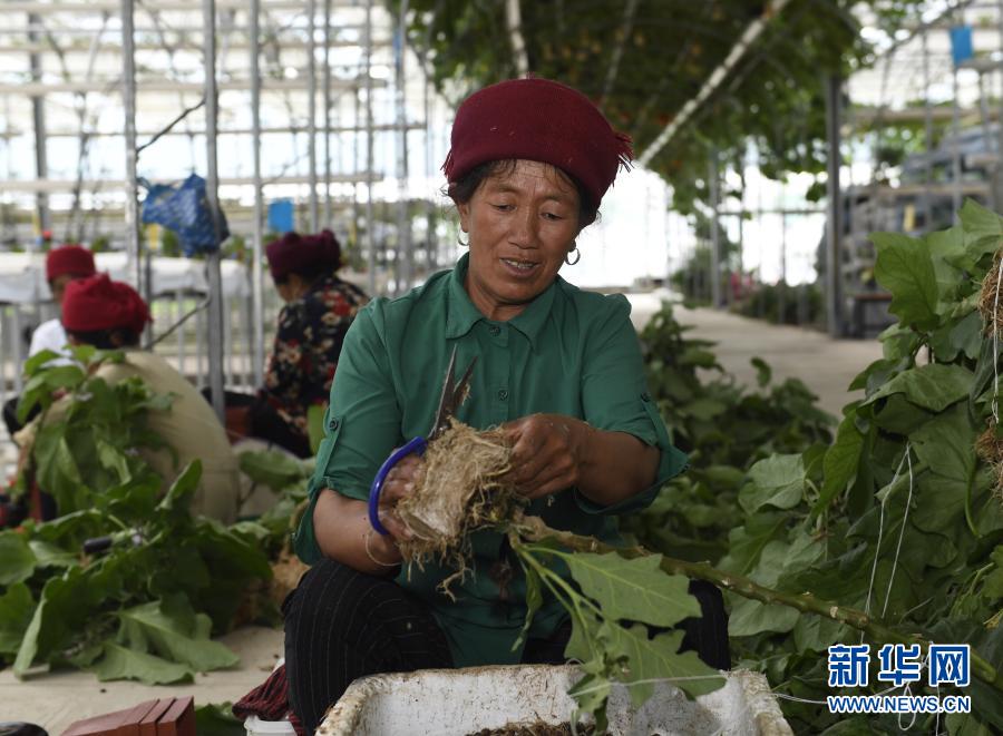 8月10日,四川省涼山彝族自治州昭覺縣四開鄉(xiāng)好谷村的阿爾衣呷在家附近的涪昭現(xiàn)代農(nóng)業(yè)產(chǎn)業(yè)園內(nèi)務工。新華社記者 劉坤 攝