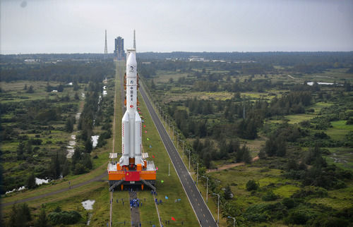 這是11月17日在中國文昌航天發(fā)射場(chǎng)拍攝的長征五號(hào)遙五運(yùn)載火箭。新華社記者 郭程 攝