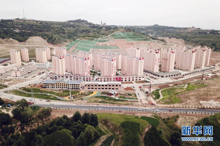 這是8月3日在東鄉(xiāng)族自治縣拍攝的縣城南區(qū)易地扶貧搬遷安置小區(qū)(無人機(jī)照片)。新華社記者 范培珅 攝