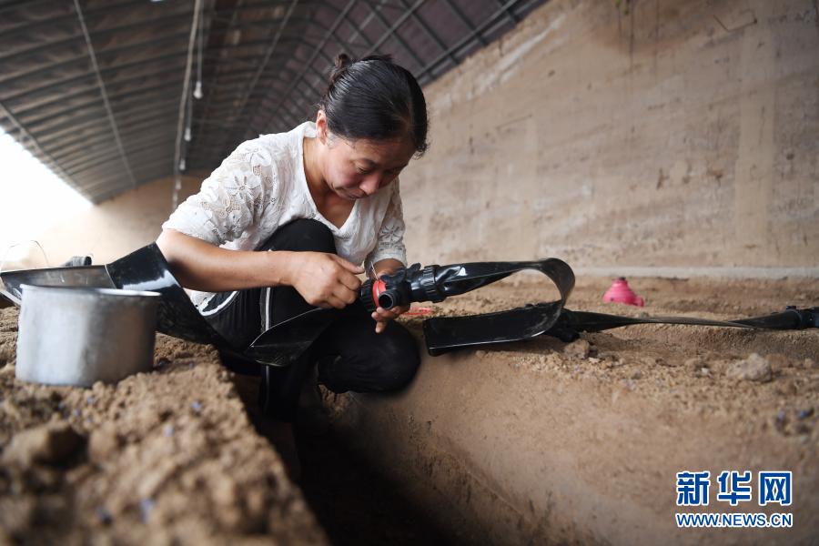 在臨夏回族自治州臨夏縣先鋒鄉(xiāng)前韓村,易地扶貧搬遷戶朱懷蘭在日光溫室內(nèi)勞作(8月11日攝)。新華社記者 陳斌 攝