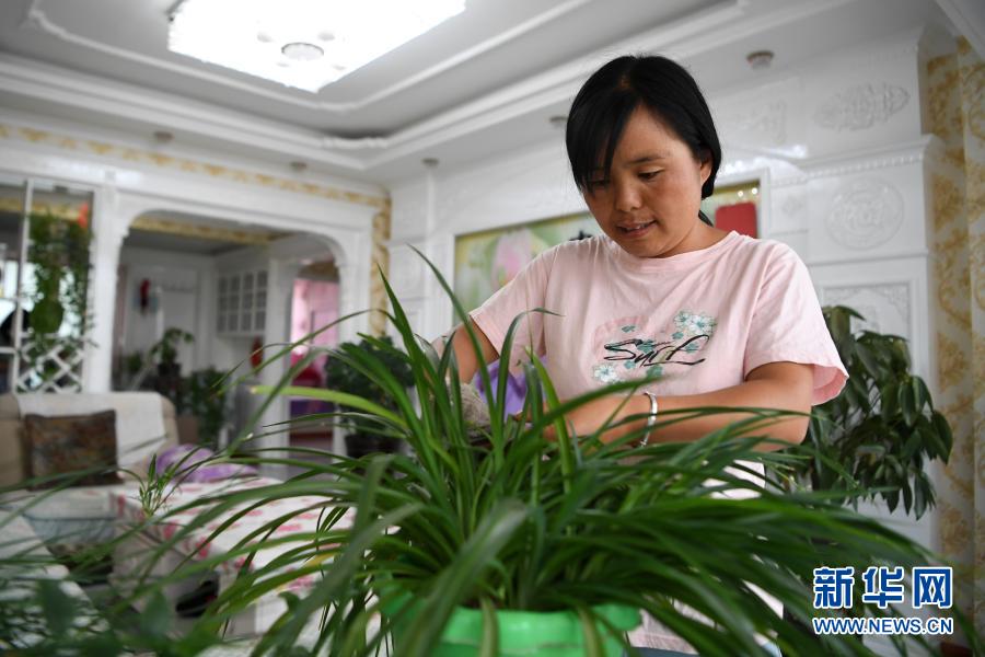 在臨夏回族自治州臨夏縣土橋鎮(zhèn)易地扶貧搬遷安置點(diǎn),搬遷戶楊喜梅在家中收拾家務(wù)(8月11日攝)。新華社記者 陳斌 攝
