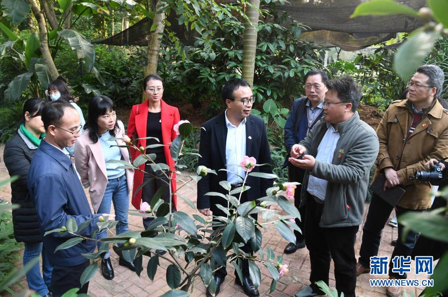 在廣西南寧市金花茶公園,南寧市市政和園林管理系統(tǒng)部分黨員干部聯(lián)系實(shí)際學(xué)習(xí)黨的十九屆五中全會(huì)精神(12月3日攝)。新華社記者 陸波岸 攝