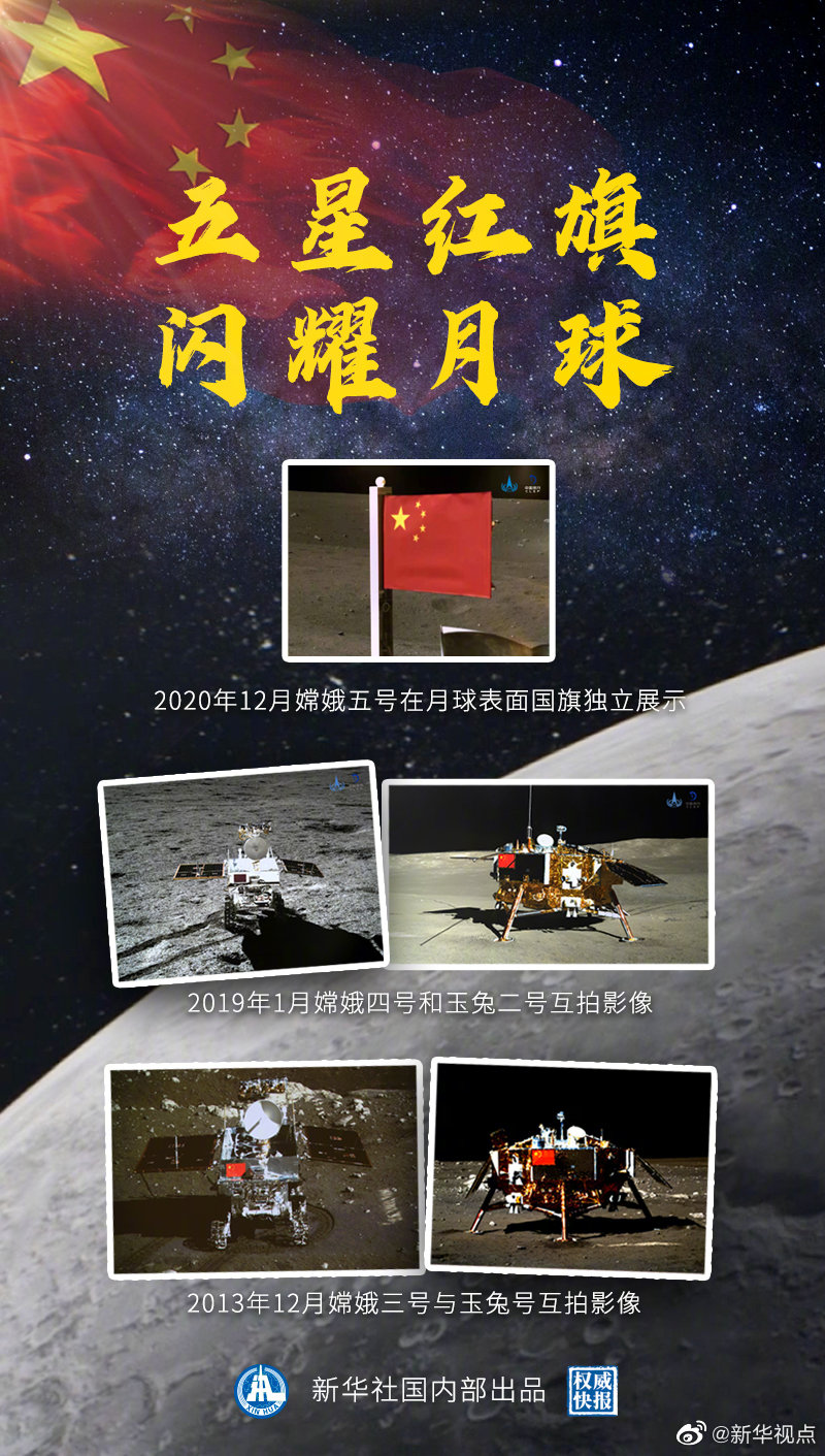 經過科研團隊的數據接收和處理,4日下午,國家航天局公布了探月工程嫦娥五號探測器在月球表面國旗獨立展示的照片。這是繼嫦娥三號、四號任務后,五星紅旗又一次展現在月球表面。畫面中,鮮艷的五星紅旗格外耀眼。轉發(fā),祝福祖國!??