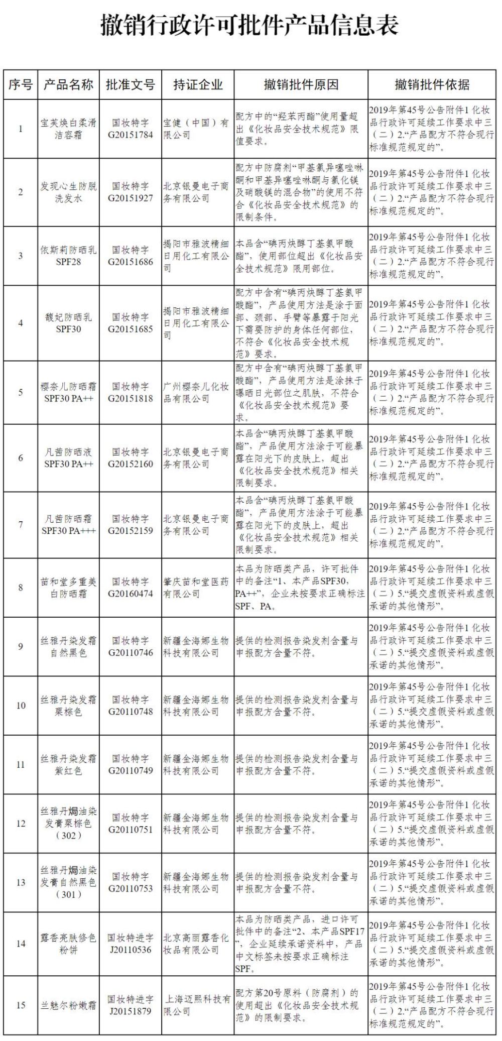 12月4日,國(guó)家藥品監(jiān)督管理局官網(wǎng)發(fā)布《國(guó)家藥監(jiān)局關(guān)于撤銷(xiāo)部分承諾制延續(xù)特殊用途化妝品行政許可批件的公告》如下: