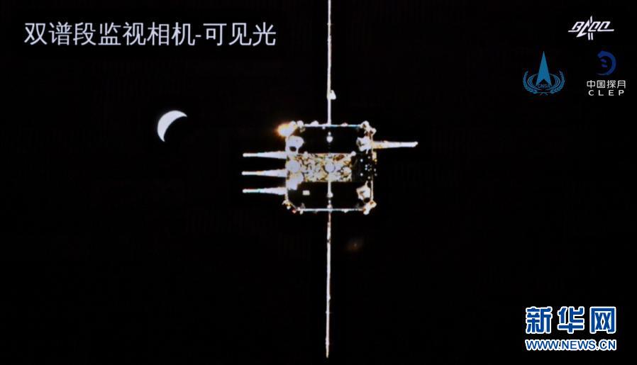 這是嫦娥五號(hào)軌道器返回器組合體逐漸接近上升器畫面。新華社發(fā)(國(guó)家航天局供圖)