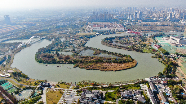 這是11月14日拍攝的江蘇省揚州市運河三灣生態(tài)文化公園景色(無人機照片)。新華社記者 季春鵬 攝