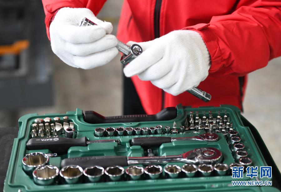 選手在汽車車身修理項目比賽中挑選工具(12月11日攝)。新華社記者 盧漢欣 攝