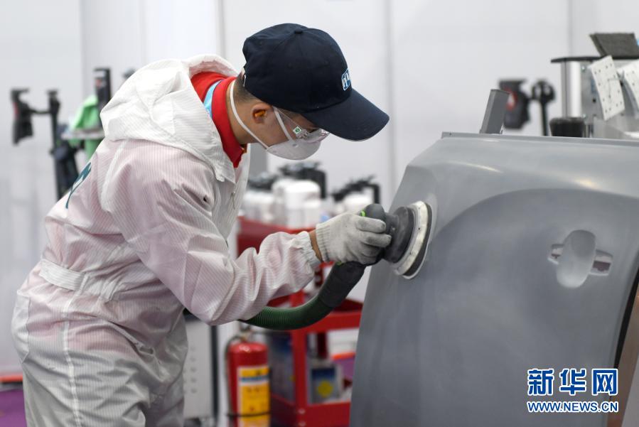 選手在汽車噴漆項目比賽中(12月11日攝)。新華社記者 盧漢欣 攝
