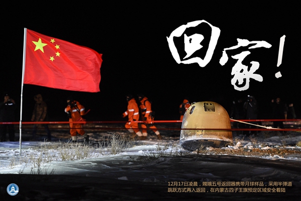 海報:回家!嫦娥五號返回器成功著陸 新華社記者 孟麗靜 編制