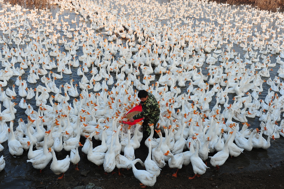 ????安徽省六安市金寨縣大山畜禽養(yǎng)殖扶貧基地位于白塔畈鎮(zhèn)項(xiàng)沖村,主要從事皖西白鵝養(yǎng)殖,開展白鵝養(yǎng)殖技術(shù)培訓(xùn)、技術(shù)交流和信息咨詢服務(wù)。扶貧基地以“遠(yuǎn)程教育+示范基地+養(yǎng)殖戶”的模式,帶動(dòng)貧困戶脫貧致富。其中貧困戶汪雷通過養(yǎng)殖一千多只白鵝,每年增加了十幾萬收入,順利摘掉了貧困戶的帽子。秦俊梅 攝
