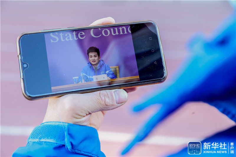 12月16日,李杰在展示他在參加國務(wù)院聯(lián)防聯(lián)控機(jī)制新聞發(fā)布會(huì)時(shí)的照片。新華社記者 張玉薇 攝