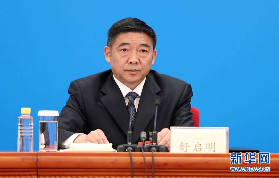5月20日,全國政協(xié)十三屆三次會議召開新聞發(fā)布會。大會新聞發(fā)言人郭衛(wèi)民向中外媒體介紹本次大會有關情況并回答記者提問。圖為兩會新聞報道組組長、全國政協(xié)十三屆三次會議副秘書長舒啟明。新華網(wǎng)記者 王翰林 攝