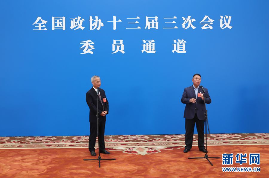 全國政協(xié)十三屆三次會議首場“委員通道”采訪活動于5月21日在人民大會堂新聞發(fā)布廳舉行,邀請部分全國政協(xié)委員通過網絡視頻方式接受媒體采訪。圖為“委員通道”現(xiàn)場。新華網 王翰林 攝