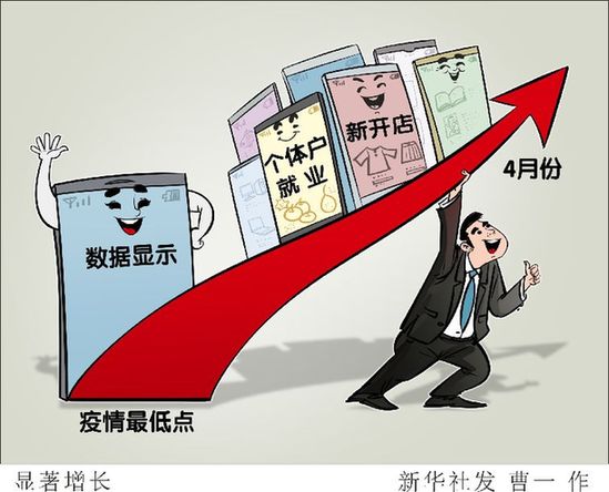 數(shù)據(jù)顯示,4月份與疫情最低點2月1日當(dāng)周相比,每周新增個體戶小店數(shù)量平均提高79%,每周新增小店的交易金額平均增長305%。在2月上旬,活躍的個體戶小店減少了40.4%,營業(yè)額降低了52.4%。(新華社發(fā) 曹一 作)