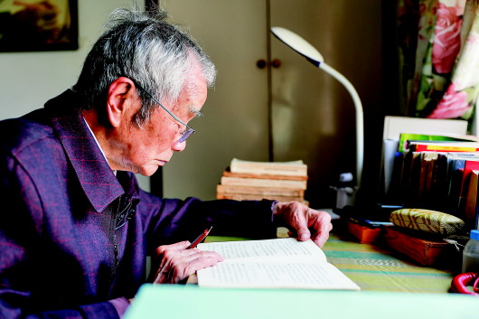 4月30日,金平在位于西南政法大學(xué)沙坪壩校區(qū)的家中伏案工作。本報記者黃偉攝