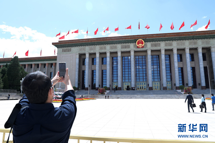 ??? 5月27日,中國(guó)人民政治協(xié)商會(huì)議第十三屆全國(guó)委員會(huì)第三次會(huì)議在北京人民大會(huì)堂舉行閉幕會(huì)。圖為媒體記者在人民大會(huì)堂外拍攝。 新華網(wǎng) 翟子赫 攝