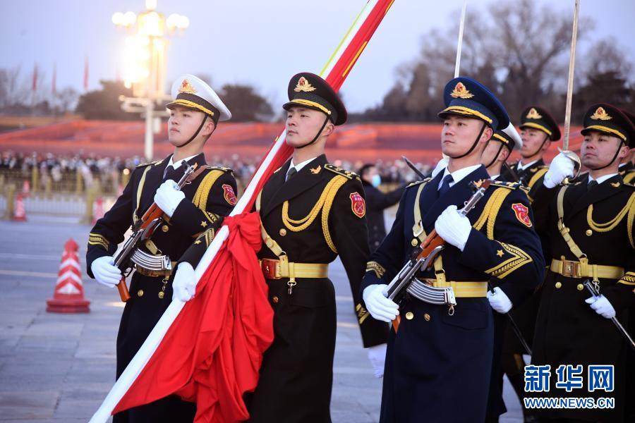 1月1日晨,北京天安門(mén)廣場(chǎng)舉行隆重的升國(guó)旗儀式。新華社記者 任超 攝