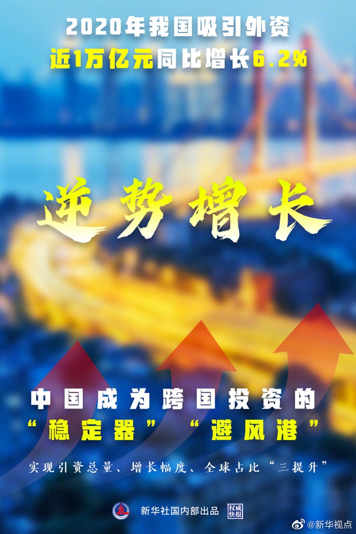 權(quán)威快報(bào)|逆勢(shì)創(chuàng)新高!2020我國(guó)吸收外資近1萬(wàn)億元,同比增長(zhǎng)6.2%