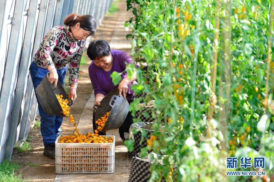 2月2日,在呼和浩特市經(jīng)濟(jì)作物工作站引種試驗(yàn)示范基地,工作人員收獲越冬茬口感型番茄。新華社發(fā)(王正 攝)