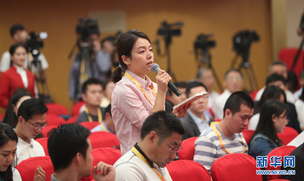 9月27日,慶祝中華人民共和國成立70周年活動新聞中心在梅地亞中心二層新聞發(fā)布廳舉辦第三場新聞發(fā)布會,中央農(nóng)村工作領(lǐng)導(dǎo)小組辦公室主任、農(nóng)業(yè)農(nóng)村部部長韓長賦,國務(wù)院扶貧開發(fā)領(lǐng)導(dǎo)小組辦公室主任劉永富介紹全面建成小康社會,扎實推進脫貧攻堅和鄉(xiāng)村振興,并回答記者提問。圖為現(xiàn)場記者提問。新華網(wǎng) 陳杰 攝