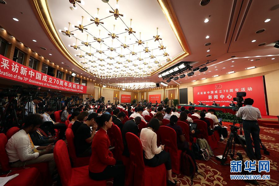9月29日,慶祝中華人民共和國成立70周年活動(dòng)新聞中心在北京梅地亞中心二層新聞發(fā)布廳舉辦第四場(chǎng)新聞發(fā)布會(huì)。圖為新聞發(fā)布會(huì)現(xiàn)場(chǎng)。新華網(wǎng)記者 焦鵬 攝