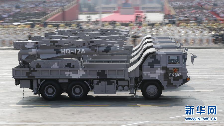 新華社北京10月1日電(記者張玉清、張汨汨)8輛紅旗-12A地空導彈發(fā)射車和4個紅旗-6A彈炮系統(tǒng)火力單元組成的地空導彈第2方隊,10月1日通過天安門接受檢閱。方隊領隊是朱瑞少將、董玉江少將。