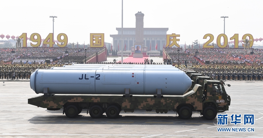 10月1日上午,慶祝中華人民共和國成立70周年大會(huì)在北京天安門廣場隆重舉行。這是巨浪-2導(dǎo)彈方隊(duì)接受檢閱。 新華社記者 高潔 攝