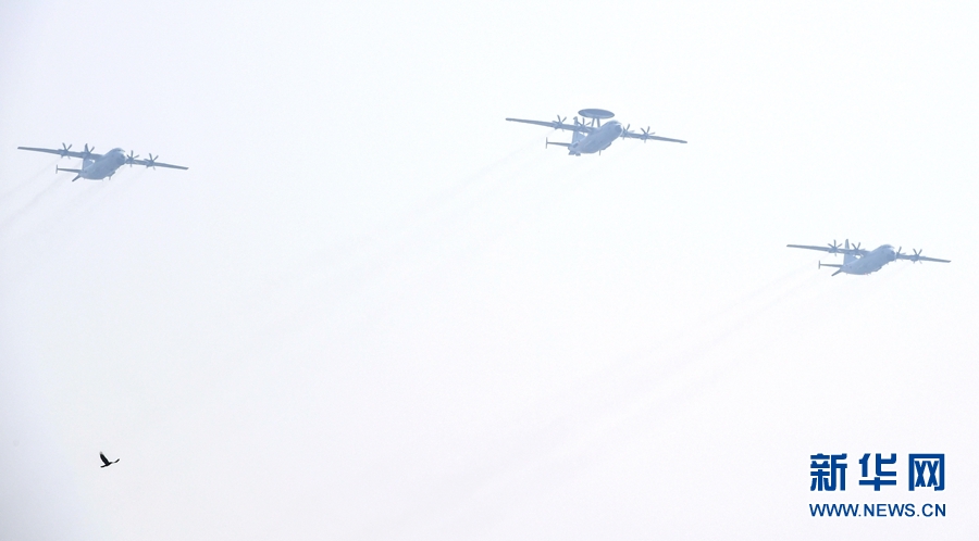 新華社北京10月1日電(黃書波、周正新)空警-500H預(yù)警機(jī)、空警-200H預(yù)警機(jī)、運-8反潛巡邏機(jī)、運-8技術(shù)偵察機(jī)組成的海上巡邏機(jī)梯隊,1日上午飛過天安門廣場上空,作為海軍新型信息作戰(zhàn)力量的4型特種機(jī)首次集體亮相。