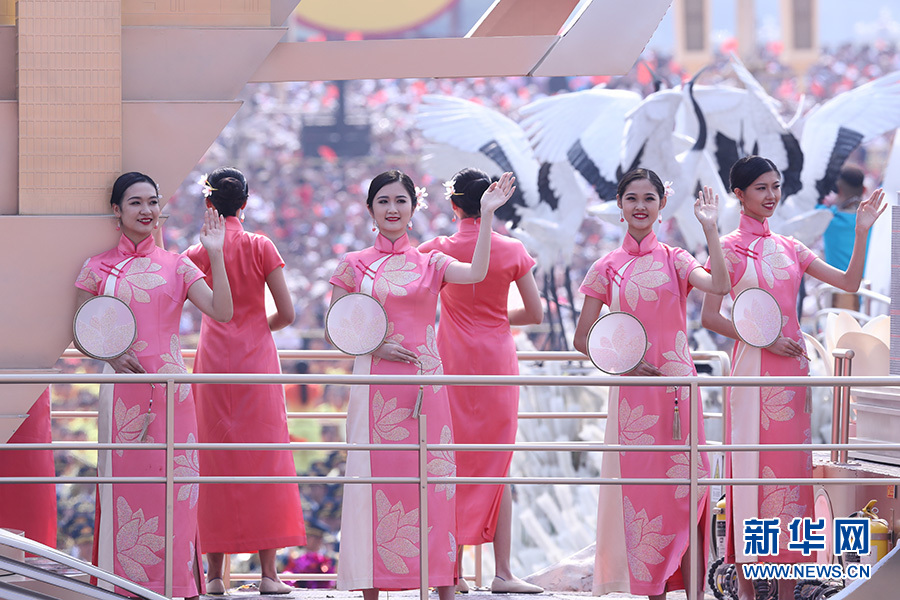 “此次群眾游行方陣?yán)镏袊?guó)文化元素的服裝集中亮相,展示了國(guó)人越來越自信的風(fēng)貌與氣質(zhì)?!北本┓b學(xué)院服裝藝術(shù)與工程學(xué)院教授鄒游說。