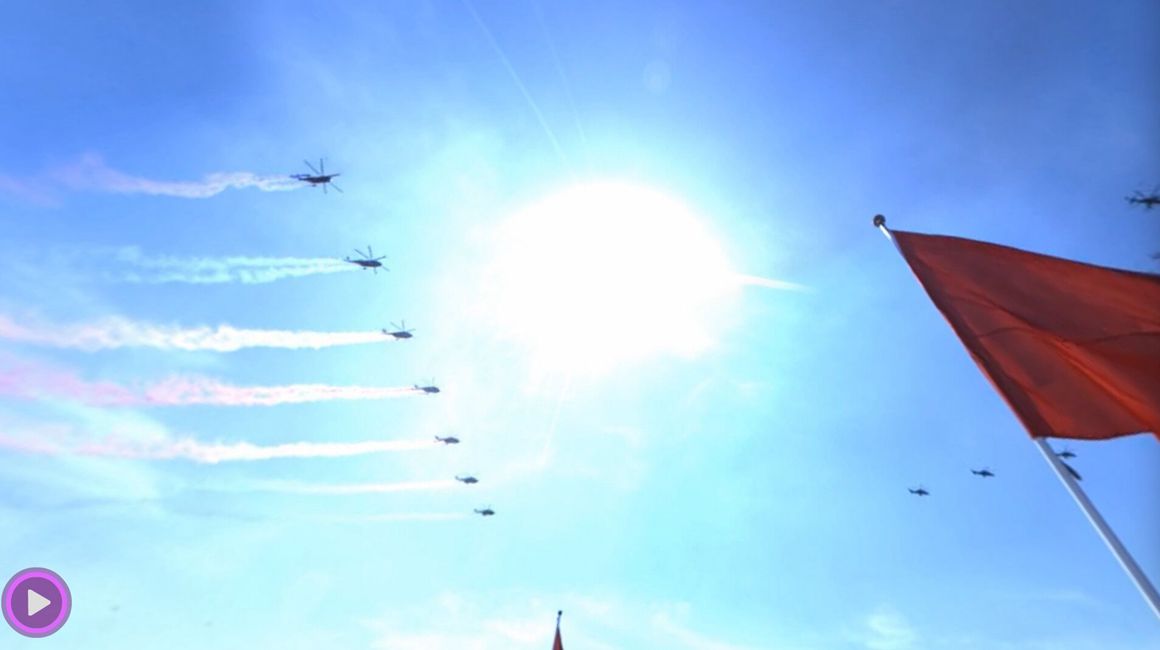 - 70架直升機組成的強大編隊最后通過天安門廣場上空