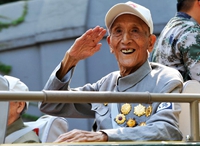 由300余名抗戰(zhàn)老兵、英烈子女、抗戰(zhàn)支前模范組成的2個乘車方隊,行進在受閱方隊最前面,接受祖國和人民的致敬。受閱的抗戰(zhàn)老同志,由從大陸遴選的、目前健在的國共兩黨抗戰(zhàn)老兵,我黨我軍和國民黨抗日英烈后代,以及抗戰(zhàn)支前模范代表組成。他們中,抗戰(zhàn)老兵平均年齡90歲,最年長的102歲;抗戰(zhàn)支前模范平均年齡88歲;英烈子女平均78歲。