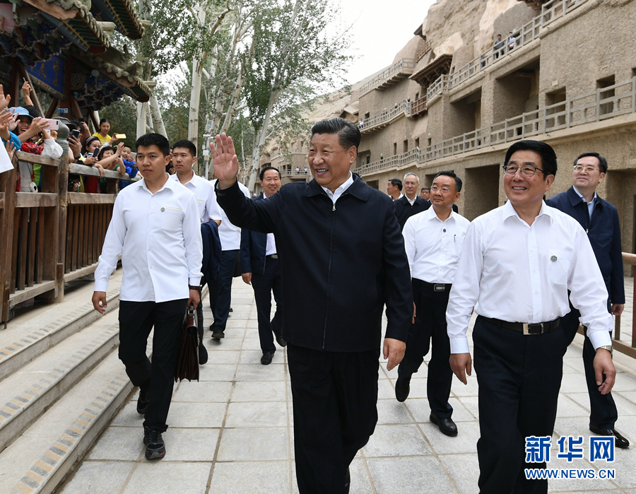 8月19日至22日,中共中央總書記、國家主席、中央軍委主席習(xí)近平在甘肅考察。這是19日下午,習(xí)近平在敦煌莫高窟考察調(diào)研時(shí),向正在參觀的游客親切招手致意。 新華社記者 謝環(huán)馳 攝