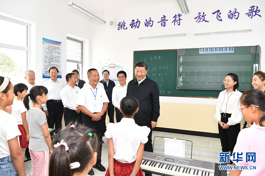 8月19日至22日,中共中央總書記、國家主席、中央軍委主席習(xí)近平在甘肅考察。這是21日上午,習(xí)近平在武威市古浪縣黃花灘生態(tài)移民區(qū)富民新村富民小學(xué)的音樂教室,認(rèn)真觀看正在進(jìn)行的音樂課教學(xué)。 新華社記者 謝環(huán)馳 攝