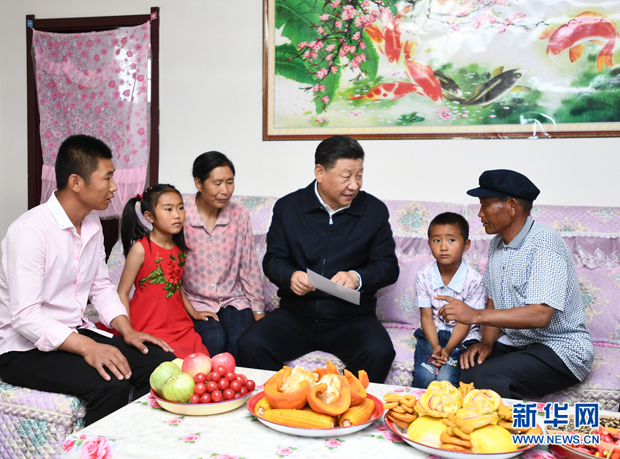 8月19日至22日,中共中央總書記、國家主席、中央軍委主席習(xí)近平在甘肅考察。這是21日上午,習(xí)近平在武威市古浪縣黃花灘生態(tài)移民區(qū)富民新村村民李應(yīng)川家,同李應(yīng)川一家拉家常。 新華社記者 謝環(huán)馳 攝