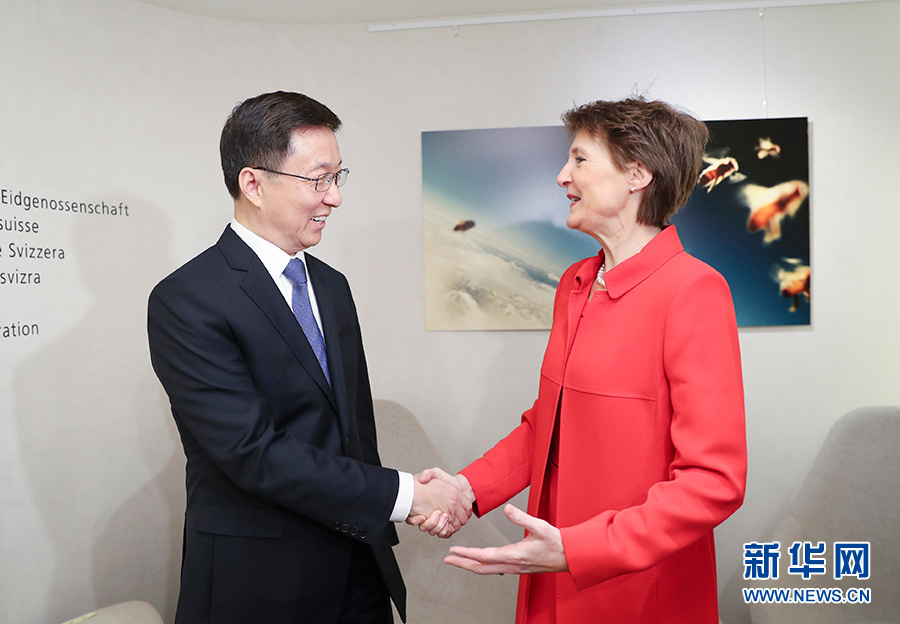 1月20日至21日,應瑞士聯(lián)邦副主席帕姆蘭邀請,中共中央政治局常委、國務院副總理韓正訪問瑞士。這是1月21日,韓正會見瑞士聯(lián)邦主席索馬魯加。 新華社記者 丁海濤 攝